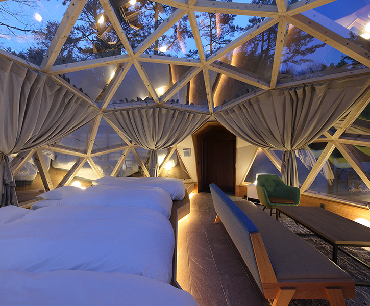 丸いフォルムのドームの中は、やわらかな光が広がる快適空間。