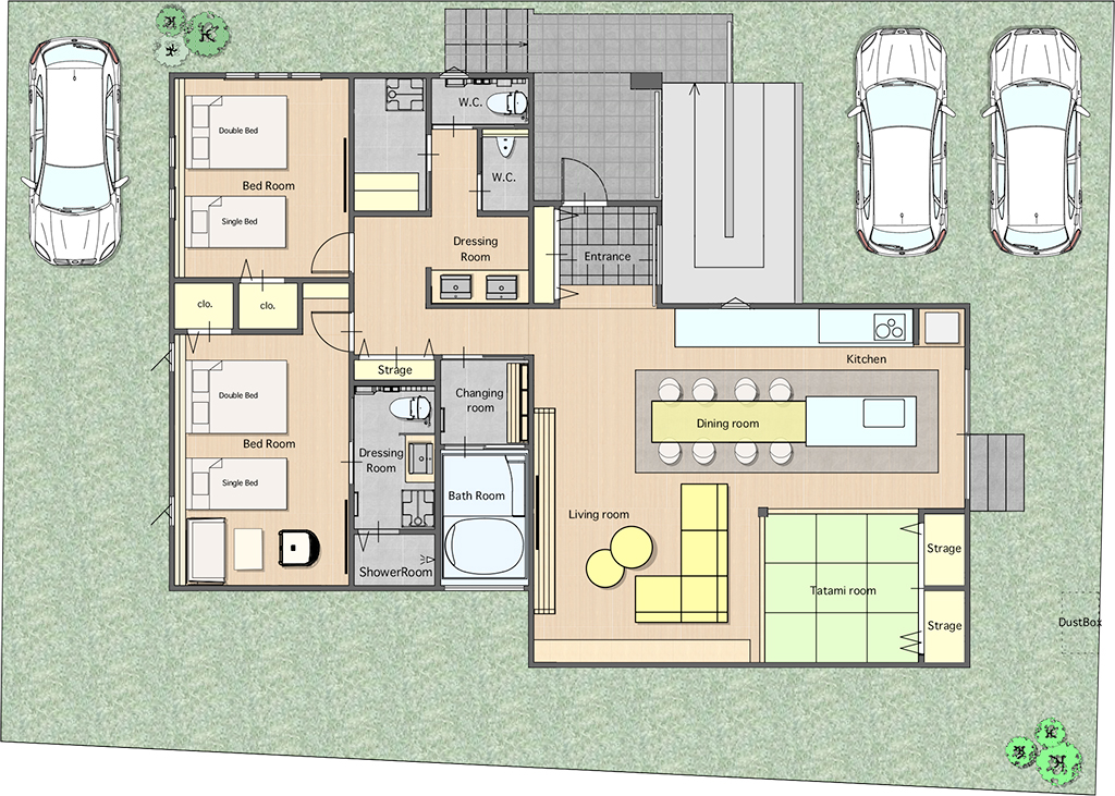 | ベッド | ダブルサイズベッド(2台)※W140cm シングルサイズベッド(2台)※W90cm 和室布団(4組) |